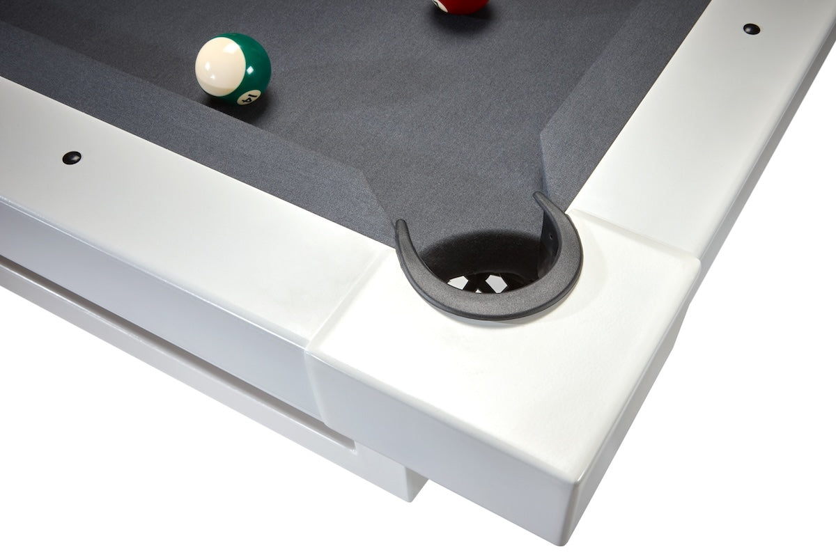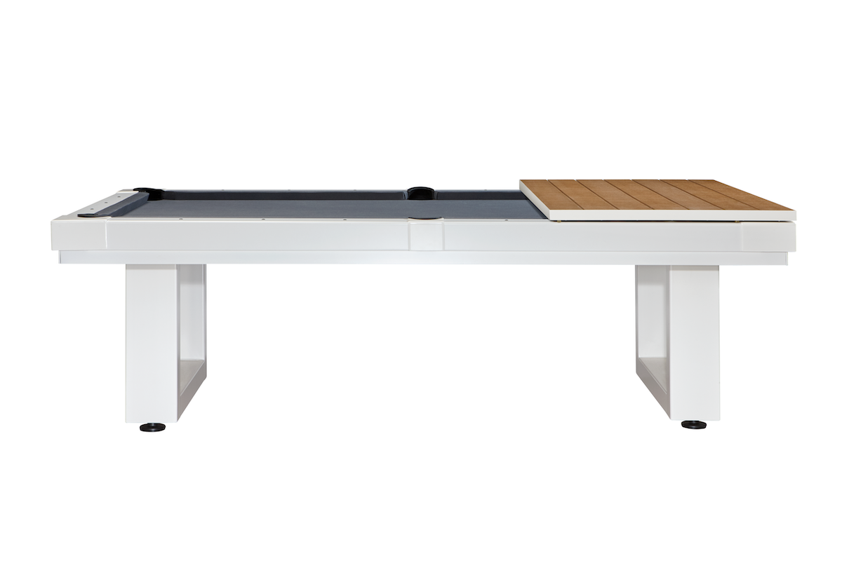Built for the outdoors, the Lanai Outdoor Pool Table is designed for the ultimate experience in alfresco home entertainment. High quality construction, stainless steel hardware, and durable powdercoat materials ensure this billiard table will delight players in your outdoor oasis for years to come. Contemporary style fits with a variety of backyard settings and landscaping. Available in four finish options: Pearl (White), Obsidian (Black), Oyster (Grey), and Seafoam (Teal).