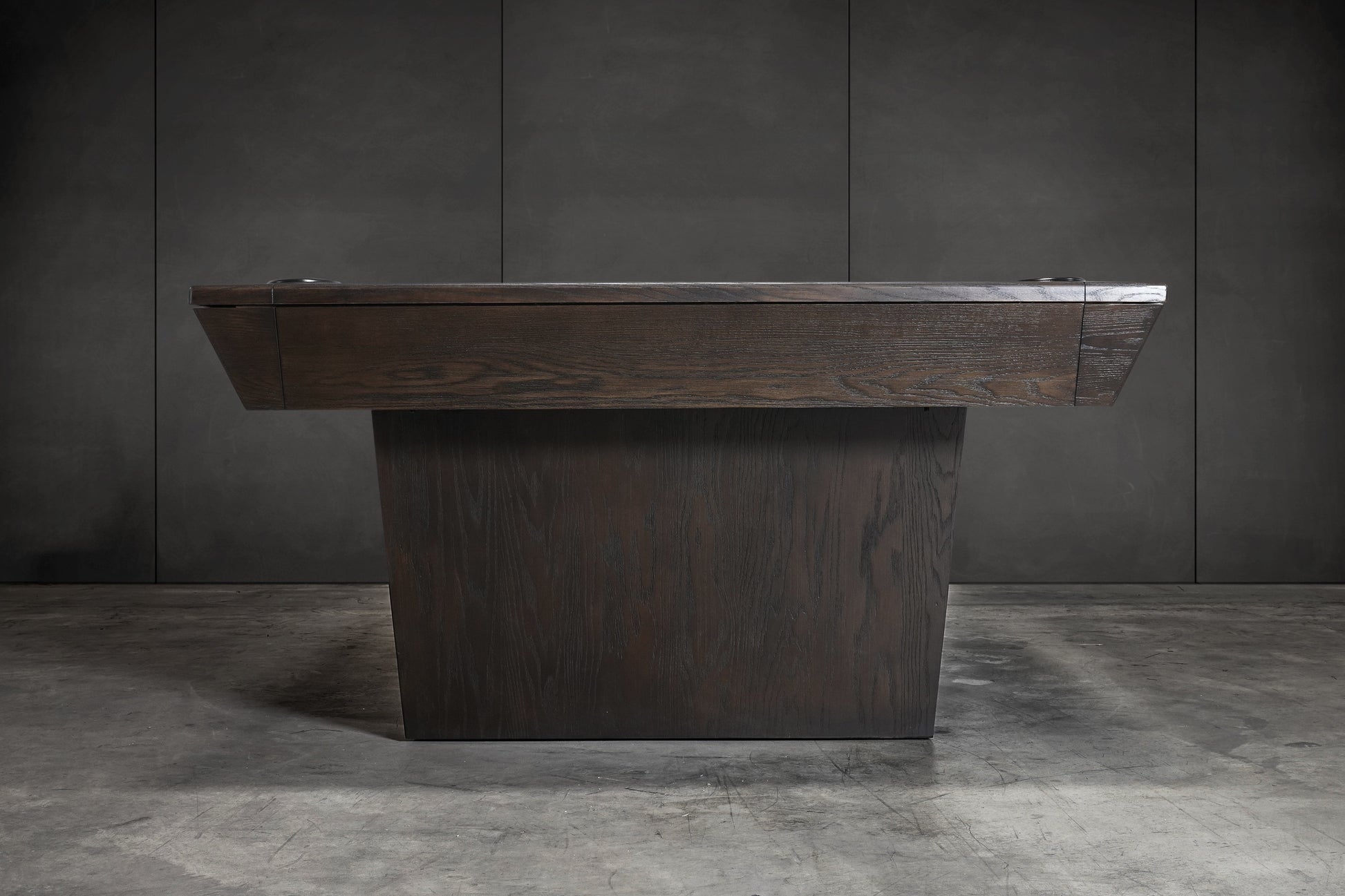 The Kai Pool Table is a sharp, modern table that offers unlimited potential when it comes to having fun and making memories with friends or family. This stunning Waxed Brown pool table can be seamlessly customized with your choice of felt color. If you want a sleek pool table that offers greater functionality and style to seamlessly blend into any space, this is the one for you.